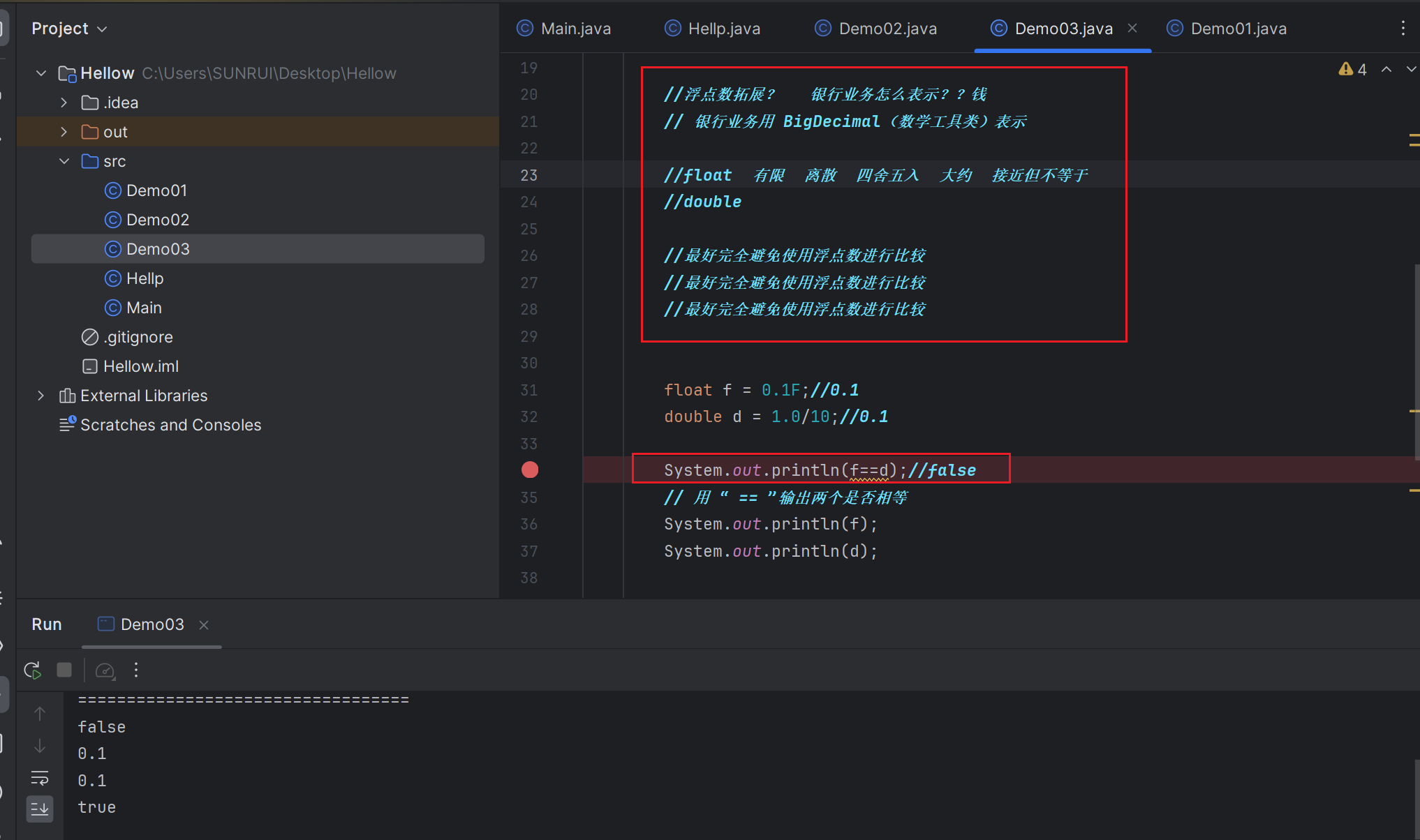 最好完全避免使用浮点数进行比较!!!(重要)