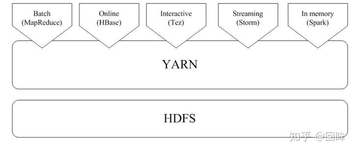 由于Hadoop MapReduce、HBase、Storm和Spark等,都可以运行在资源管理框架YARN之上,因此,可以在YARN之上进行统一部署(如图9-16所示)。这些不同的计算框架统一运行在YARN中,可以带来如下好处: