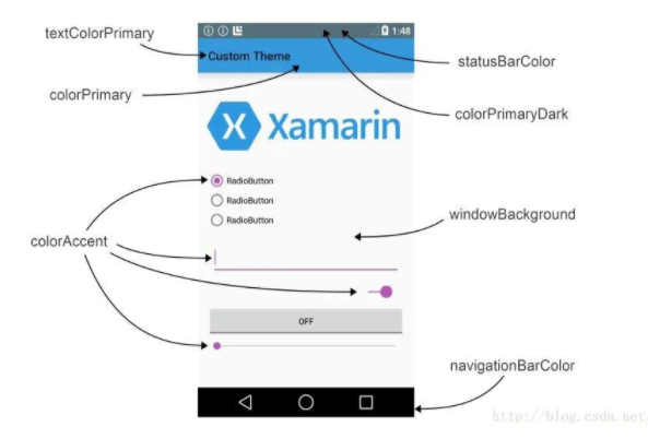 android:theme="@style/ThemeOverlay.AppCompat.Dark.ActionBar" // ToorBar使用深色主题,组件自动使用浅色主题