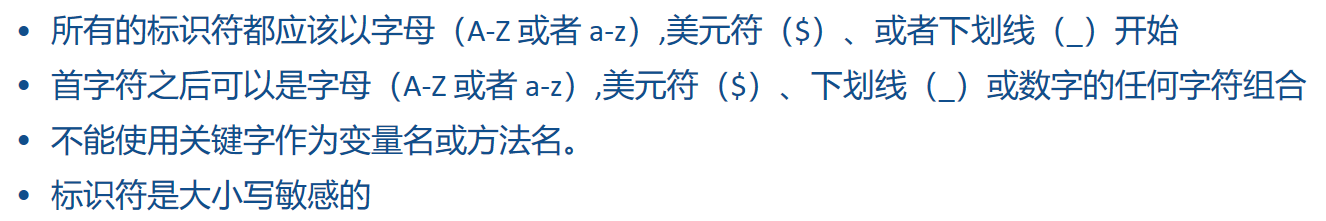 | 常量名 | 所有字母都大写。多单词时每个单词用下划线连接。 |