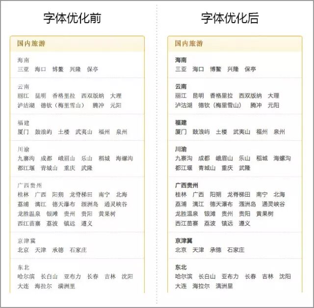 就拿最简单的宋体(simsun)来说吧,在Windows系统下显示是一个比较容易阅读的字体,然而在Mac上简直无法直视,如下图给出一个优化前后页面的对比效果: