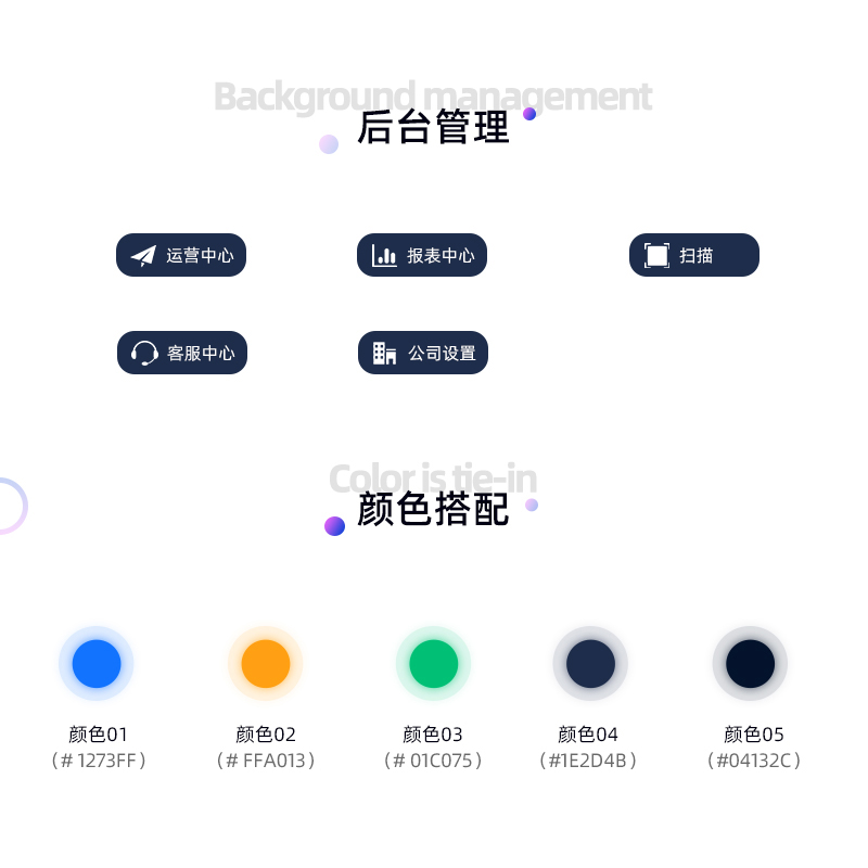 后台功能模块:运营中心、报表中心、扫描管理、客服中心、公司设置