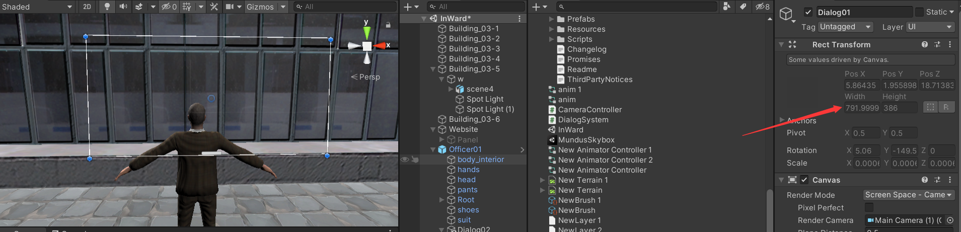 题主本来打算添加字幕,该字幕在触发后会显示于屏幕的正下方,但是在调整帆布大小时发现无论怎么用Rect Tool工具调整其长宽比,其在世界视角下大小改变,但是实际大小确并不改变。如下图所示: