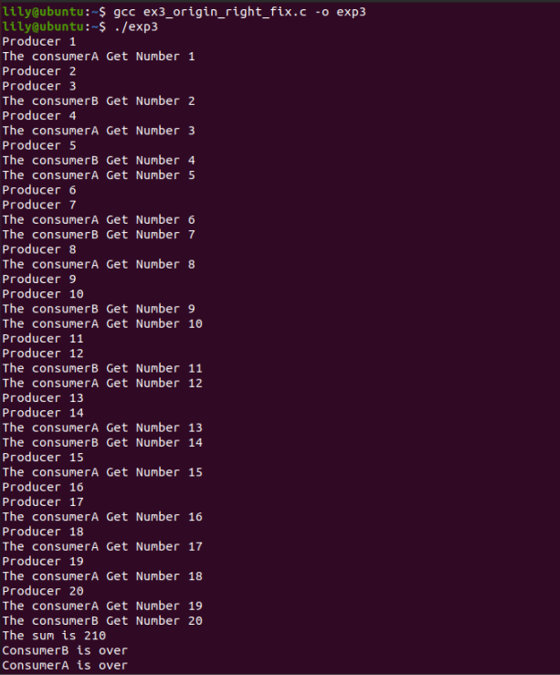 printf("The consumerA Get Number %d\n", array[(*get) % MAXSEM]);//消费者A取了多少个