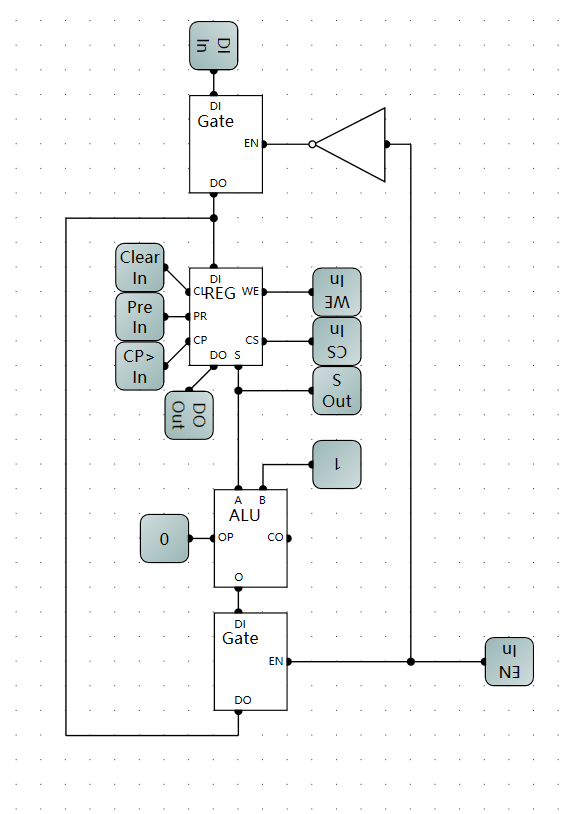 EN:三态门使能,在输入输出端分别加上三态门用来隔离总线;EN=1输出(计数),EN=0输入(预置数)