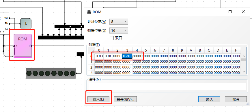 上电之后,点击左上角按键,计数器和寄存器都被置为0。接着我们打开计数器使能,寄存器写使能,给寄存器一个时钟信号,将ROM里0地址的数写到加法器的A输入口。