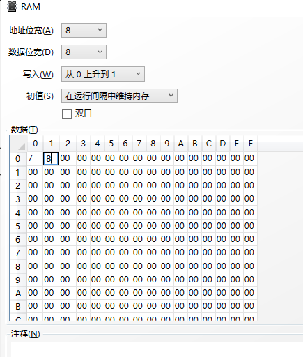 设置RAM为随机数,打开仿真,先看一下RAM里的随机数