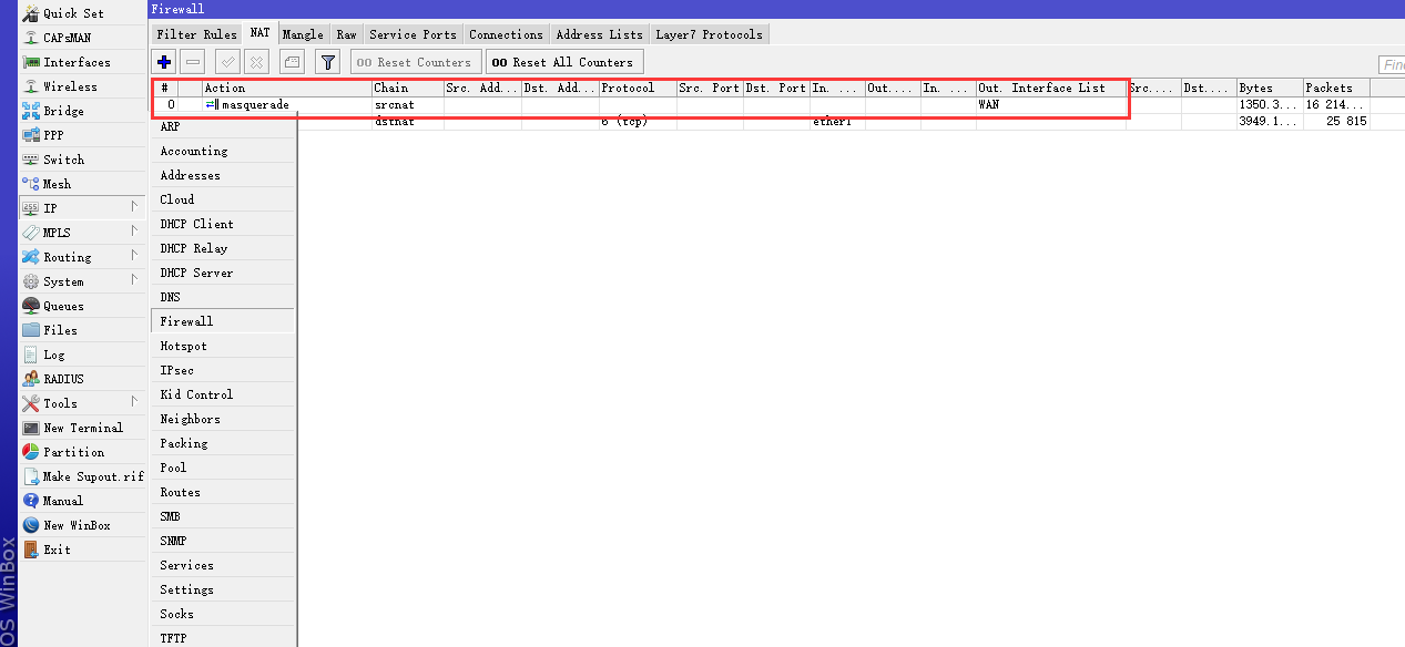 我的设备是RB450Gx4,5个网口,第一个网口作为WAN,其他网口做为LAN,WAN配置静态 IP地址,LAN通过ros的DHCP获取地址经过NAT后上网。