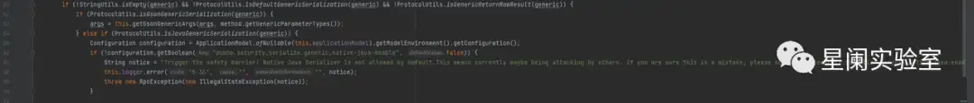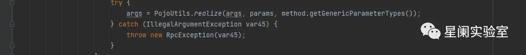 在此前的CVE-2021-30179漏洞就是利用了Dubbo泛化调用功能,用户可以向Dubbo服务端传入任意类,这就导致攻击者可以通过反序列化的方式,来触发特定Gadget,达到远程命令执行的目的。在CVE-2021-30179后续的补丁中,增加了黑名单来过滤恶意传入的类,而CVE-2023-23638就是对此防御方式的绕过。