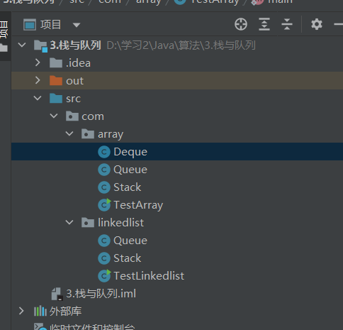项目结构:(双端队列同样属于栈&队列范畴)