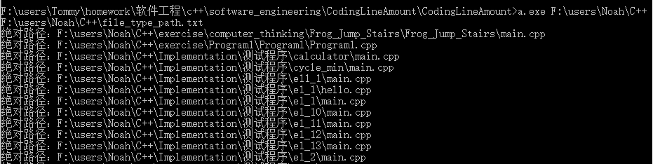 其中a.exe为g++编译后的源程序,第二个命令行参数规定了检索文件目录,第三个命令行参数指定文件类型存储txt文件所在的路径。