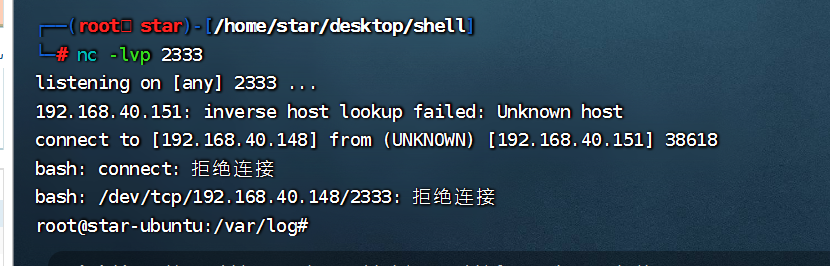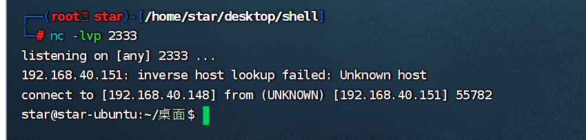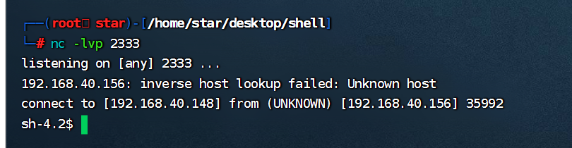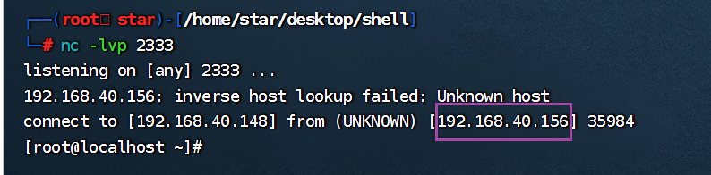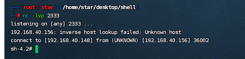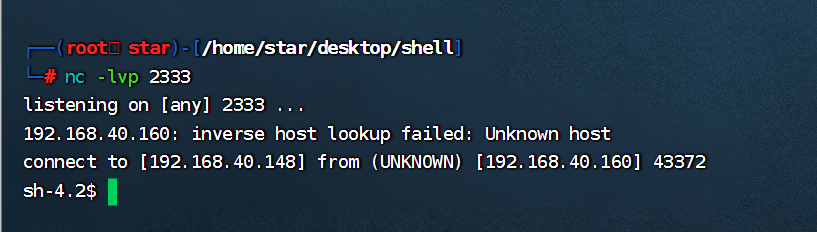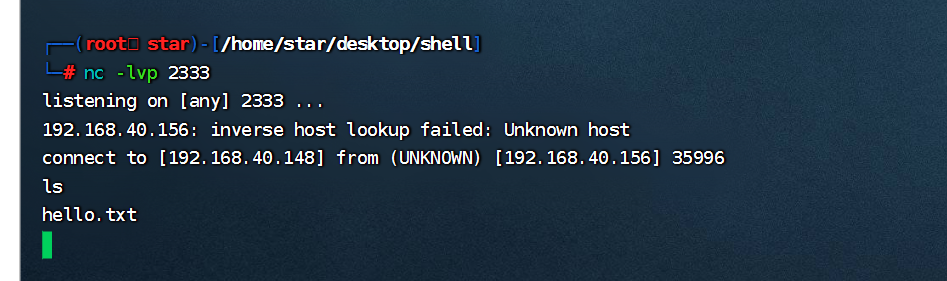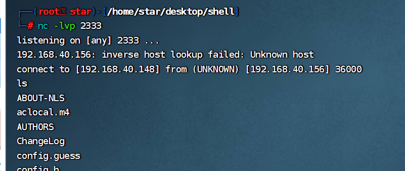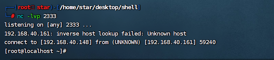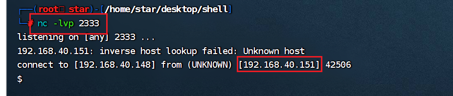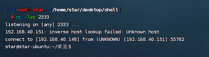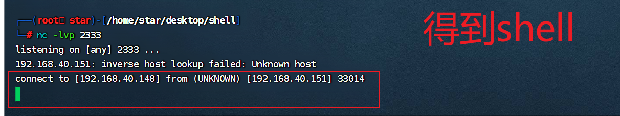 kali: nc -lvnp 2333(开放并监听2333端口)