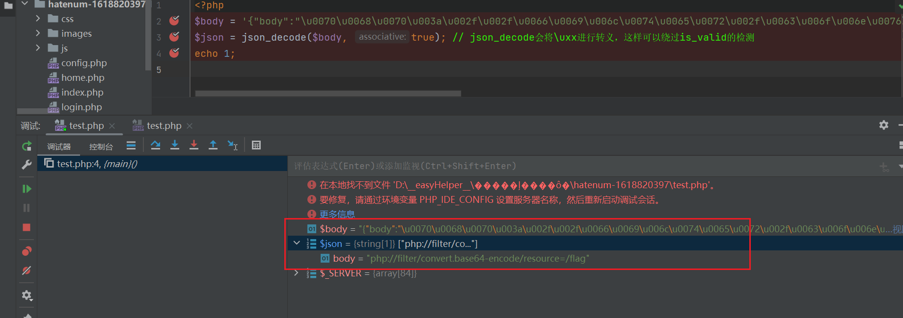 关键在于json_decode会将\uxxx进行转义,这样就可以绕过is_valid