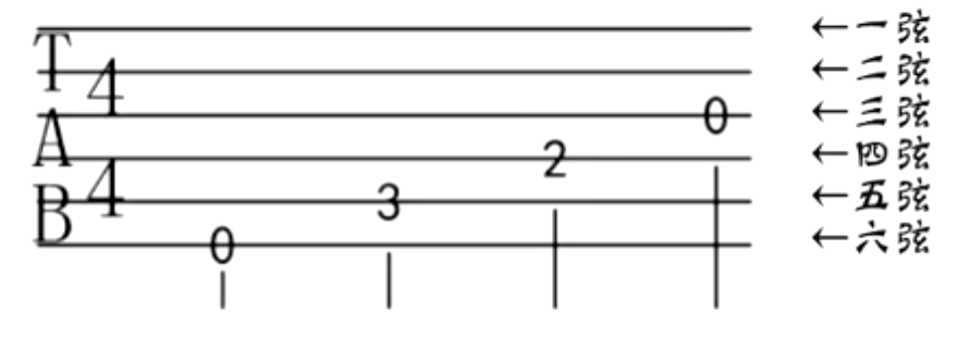 0代表空弦,数字代表几品,标记在哪个弦上就是哪根琴弦。