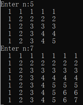 printf("Enter n:");