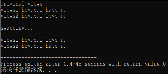 printf("\nswapping...\n\n");