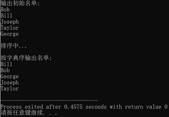printf("\n按字典序输出名单:\n");