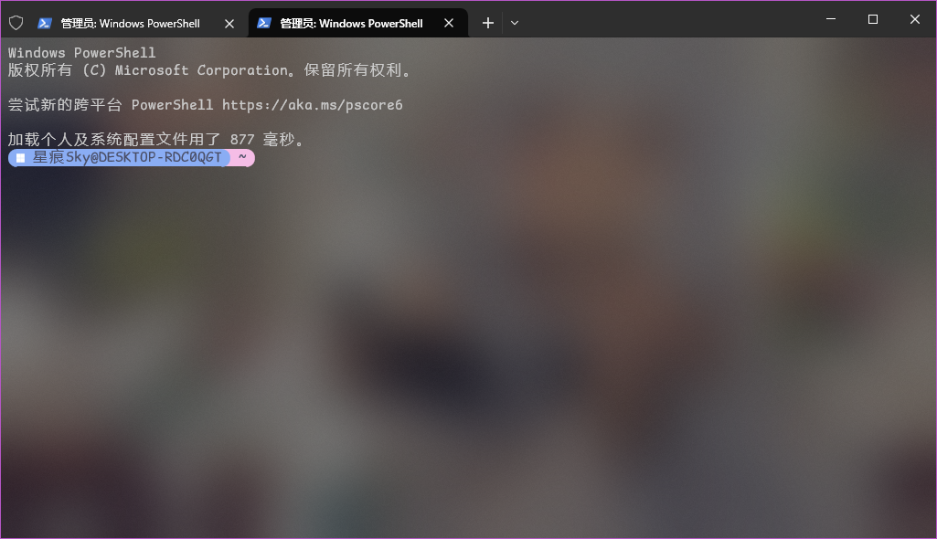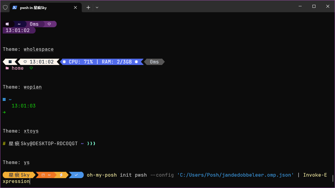 就可以看到默认主题效果了,如果你的路径里包含中文,请在$PROFILE最上方加上这一行修改默认编码为utf-8