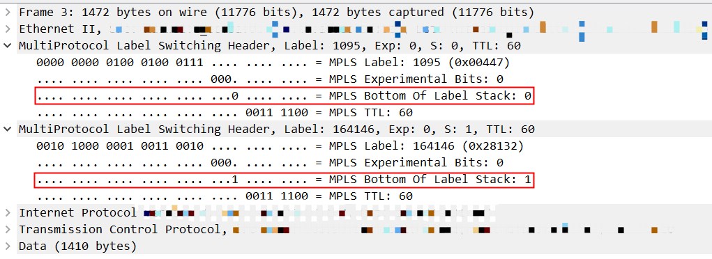 摘要: #缘起  解包的时候发现数据包里面多了一层mpls,有时会有两层,一层是4字节,如果是多层,每一层里面会有一位,指