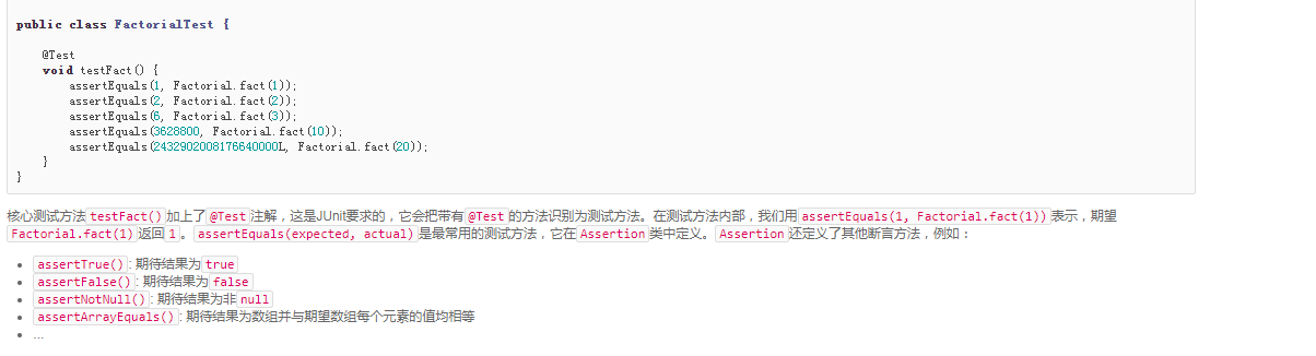 这里说的是:如何去编写单元测试,就是测试你的代码和预期的答案是不是相同的 如果是相同的 认为你的代码是没问题的