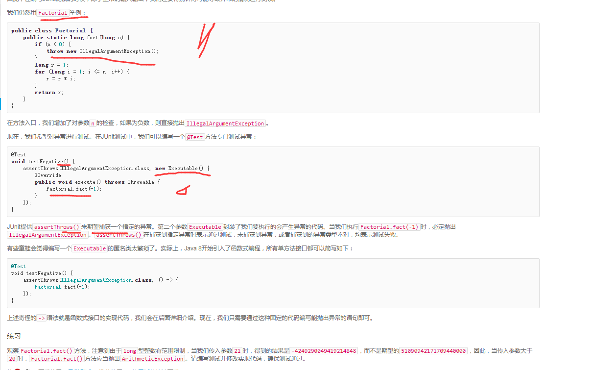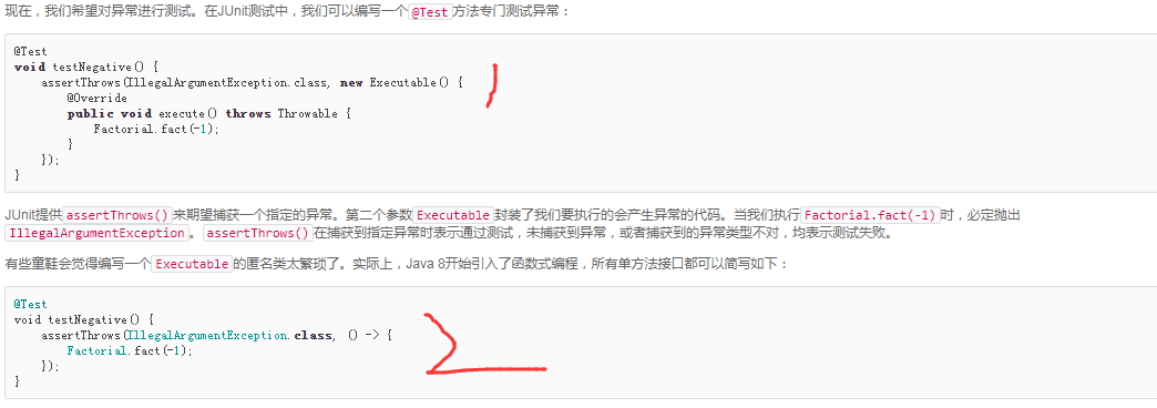 这里说的是说:测试异常,如果你的代码里面有能够产生异常的,那么就需要写异常的测试