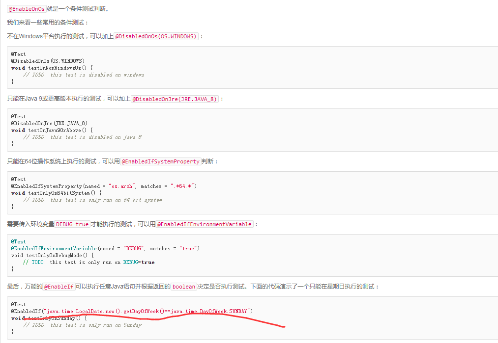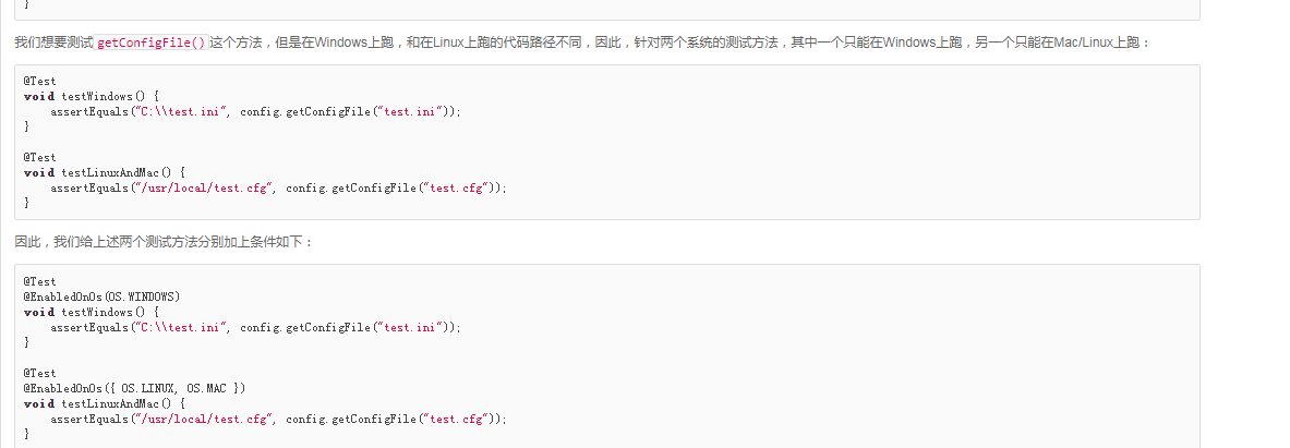 不同的测试代码,就是说只在某些平台上运行,就是用EnableOnOs这个注释