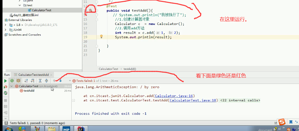 以及怎么样算是正确,是看下面是绿色还是红色,绿色表示正确通过了,红色表示没通过,看的是有没有exception