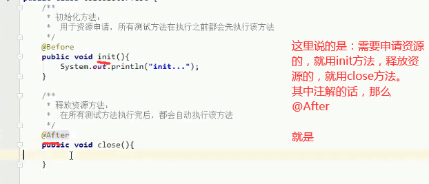 就不是用在这个构造函数等,就是用于这个init方法和close方法,其中再带上里面的@注解