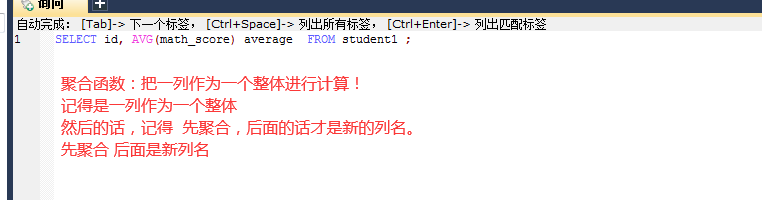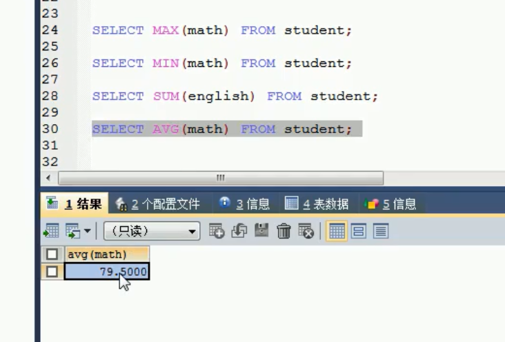 其他的聚合函数其实也没什么好说的了,记住一件事:肯定是对列进行计算