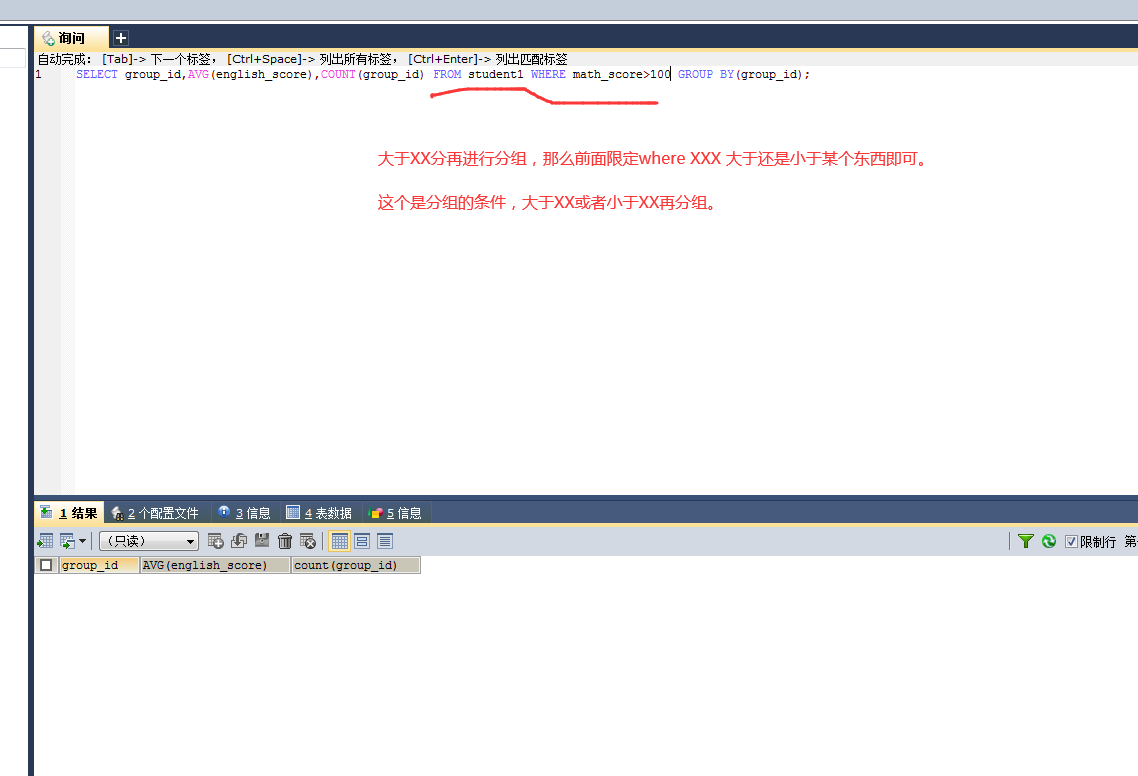 这里讲到的就是分组,以及说 满足XX条件才进行分组,以及说分组之后结果的显示自己就知道了