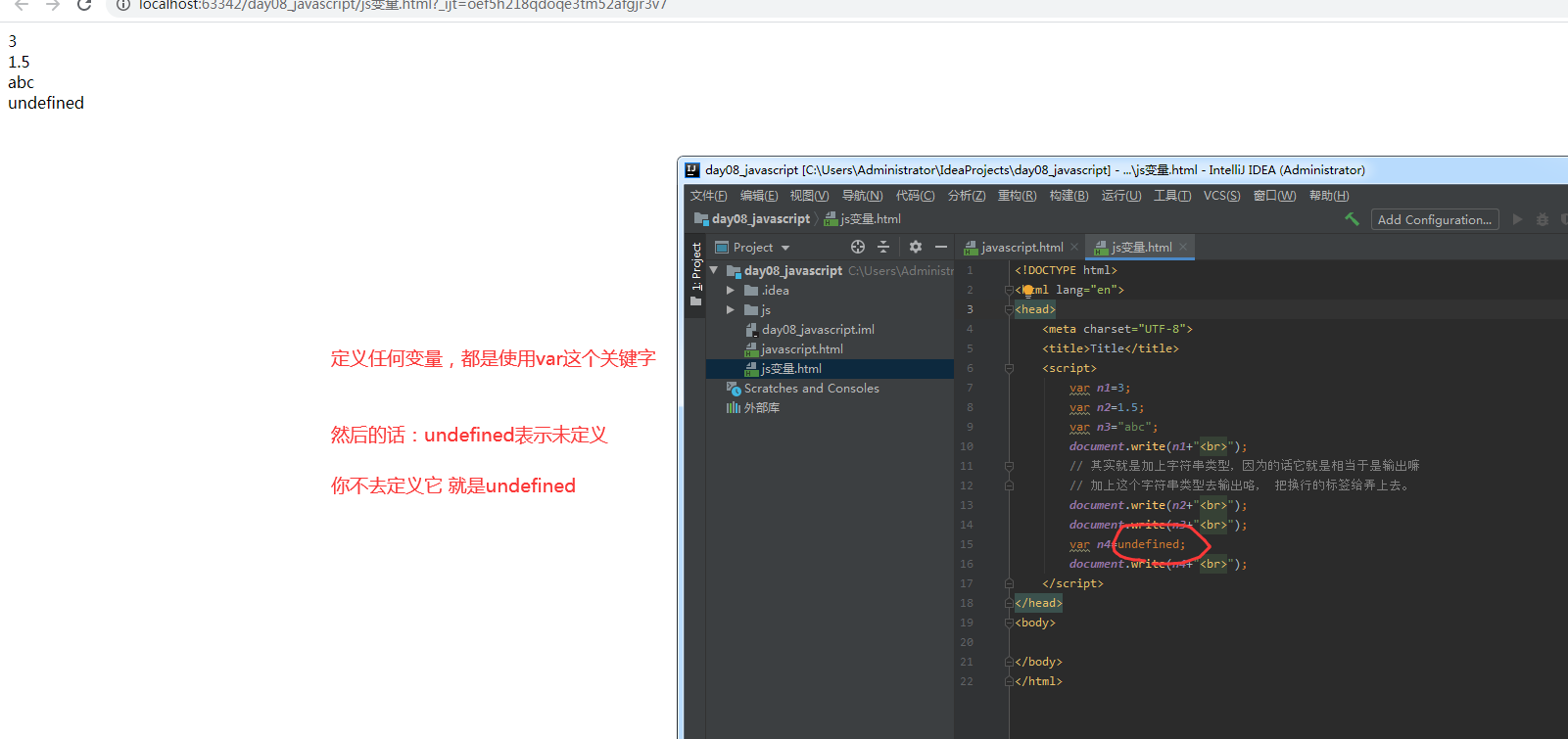 之后javascript a可以放整数类型 也可以放小数类型等等。