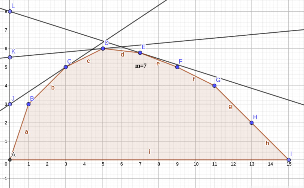 \(y=kx+b,b=y-kx,b\)要尽量大,就可以找到使这个值最小的位置,我们二分调整\(k\)即可让个数恰好为某个数是,减去我们强行加的贡献便可得到答案