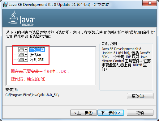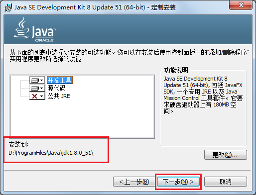 注意:这里安装目录中包含Java\JDK1.8.0_51,这样下次就比较直观的能够清楚自己安装的是哪个版本的JDK