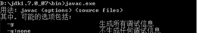 (2)进入到 jdk安装路径\bin目录下,执行javac,会看到javac参数提示信息。