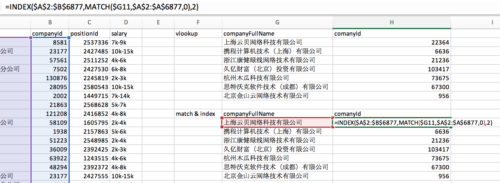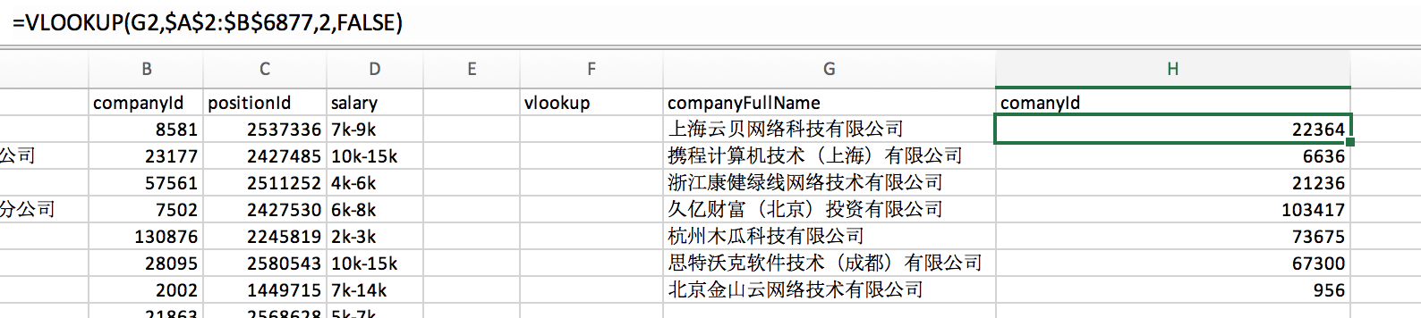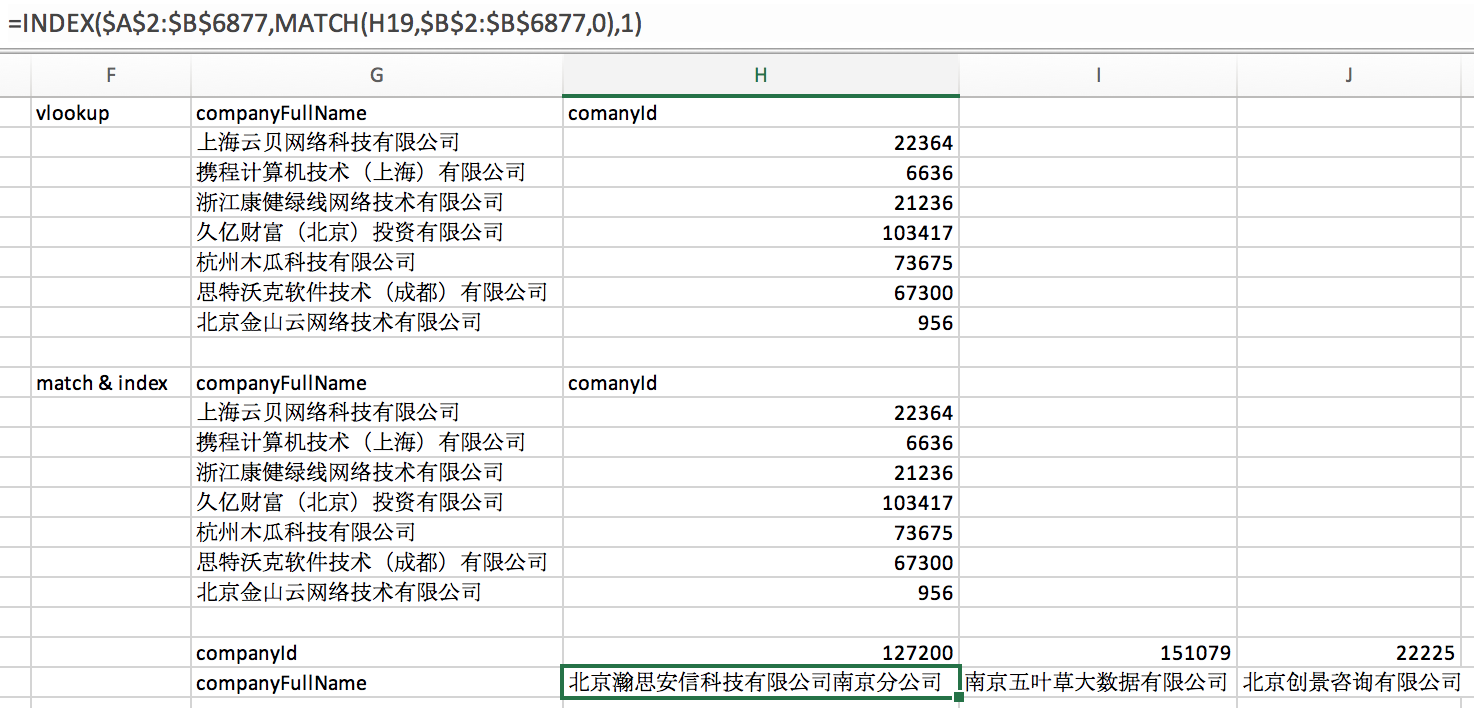 1. 用vlookup函数 查找以下公司的 companyId | companyFullName
