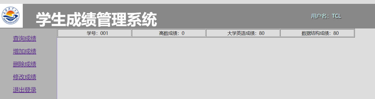 可以看出一个管理系统的最基本的增删改查功能,基本都涉及到了,可是测试后发现,在进行删除成绩的功能时,每次删除某个学生的成绩,会将其所有成绩清零,这一点在实际应用中显得有点不合理。所以我决定对此进行优化,使其可以删除学生的某一项成绩。