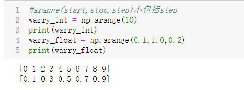 arange(start, stop, step):创建一个以step为步长, 区间为[start, stop-1]的数组
