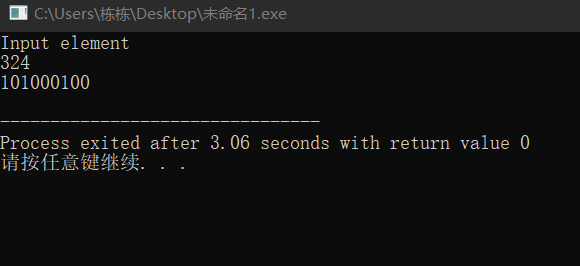 2、在第1题的程序中,编写一个十进制转换为二进制的数制转换算法函数(要求利用栈来实现),并验证其正确性。