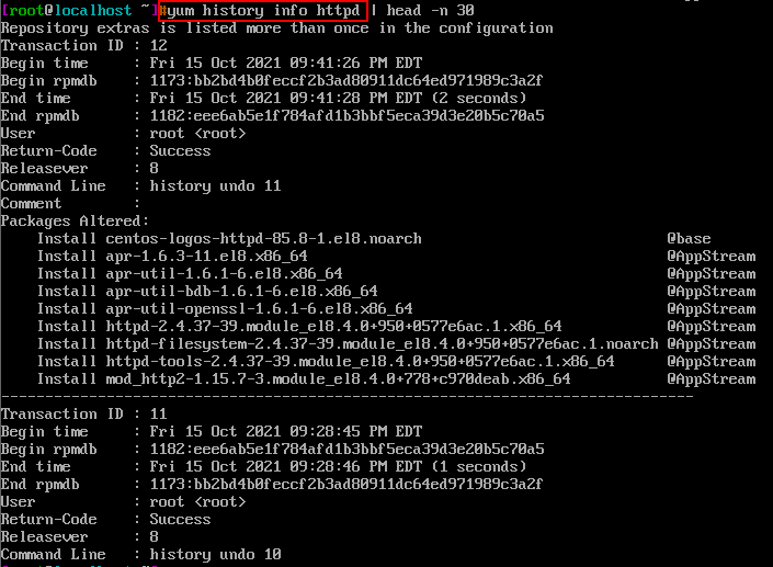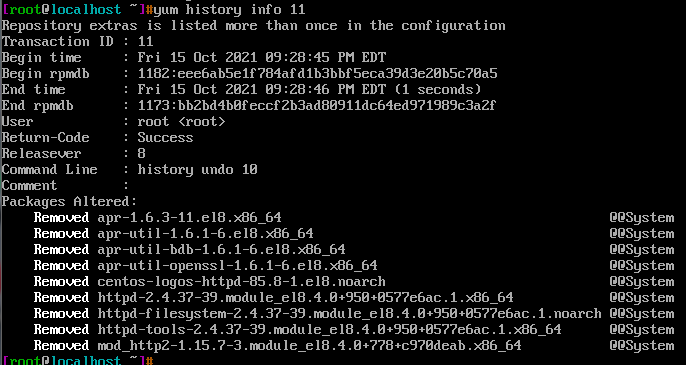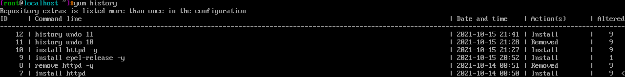 yum history info 11 则仅仅显示id 11安装卸载信息