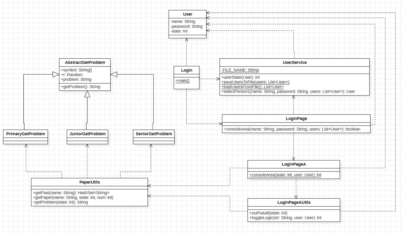 2、小学,初中和高中生成题目有很多重复部分,可以考虑将一些部分写成方法放在抽象类中,比如插入运算符,插入操作数等,这样子类直接调用方法即可,提高代码的简洁度和可复用性。