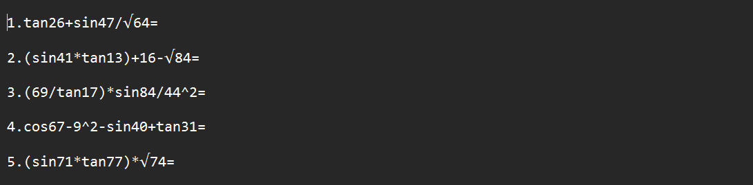 3、生成三角函数时建议只生成30,45和60度,否则题目过于太难。