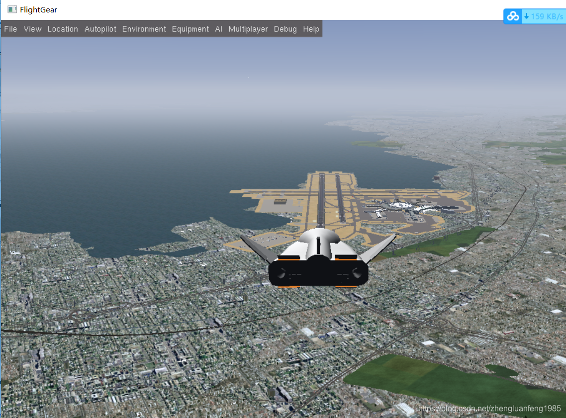 8、运行HL20模型,在FlightGear中按v/V键切换视角。