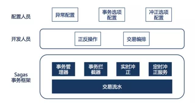 Sagas事务框架:提供事务保障机制,负责原子操作的流水落地,原子操作的执行顺序,提供实时冲正、定时冲正、事务拦截器等基础能力;
