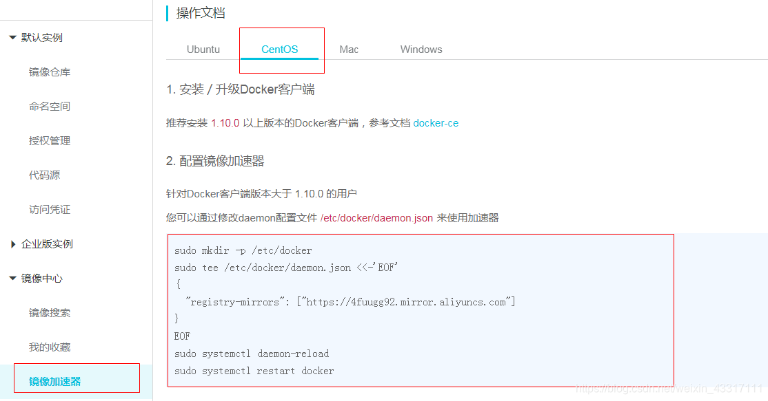 进入https://www.cnblogs.com/qgc1995/p/9553572.html,选择镜像加速器